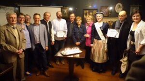 Pour poursuivre cette soirée bien remplie, survint une agréable surprise. Thierry BORREL, vice-pdt de la Ligue Auvergnate dévoila peu à peu les éléments de la biographie d’une personne qui se découvrit avec stupéfaction… Il s’agissait de Marc TARDIEU, écrivain d’une vingtaine d’ouvrages en lien avec les « bougnats », les communautés auvergnates à Paris et autres, très attaché à ses territoires lozériens et aveyronnais, fidèle et loyal membre du jury « historique », depuis 2007 du prix Averne. Très surpris et heureux, il reçut des mains du grand chancelier du Mérite Amicaliste, Christian NOEL au nom de tous, les insignes de chevalier du Mérite amicaliste et c’est, très ému, qu’il remercia la Ligue pour cette réjouissante surprise.