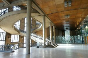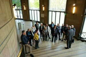 Pendant deux heures, Alain CORDESSE a fait admirer au groupe l’extérieur et l’intérieur de ce magnifique monument en expliquant l’architecture en béton qui le recouvre, insistant sur la beauté de la salle hypostyle aux 20 colonnes et du double escalier suspendu, aérien, somptueux dans sa légèreté.